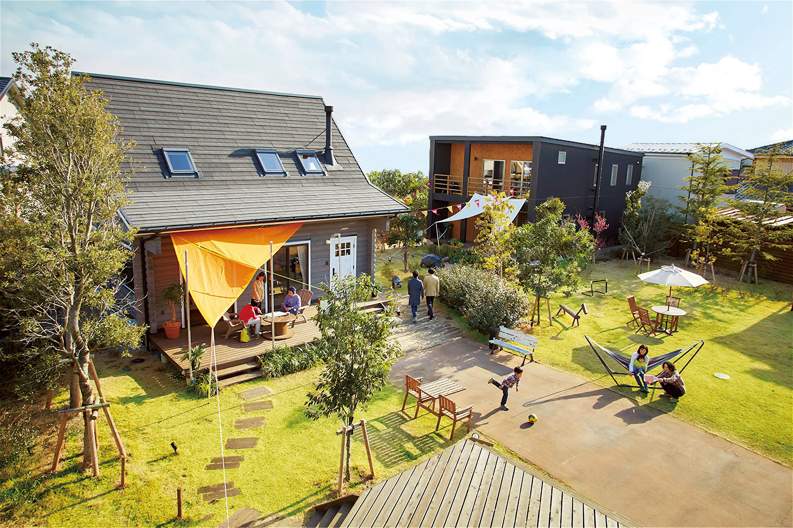 BESSの展示場でアウトドアライフを楽しむ家族の様子 LLCF